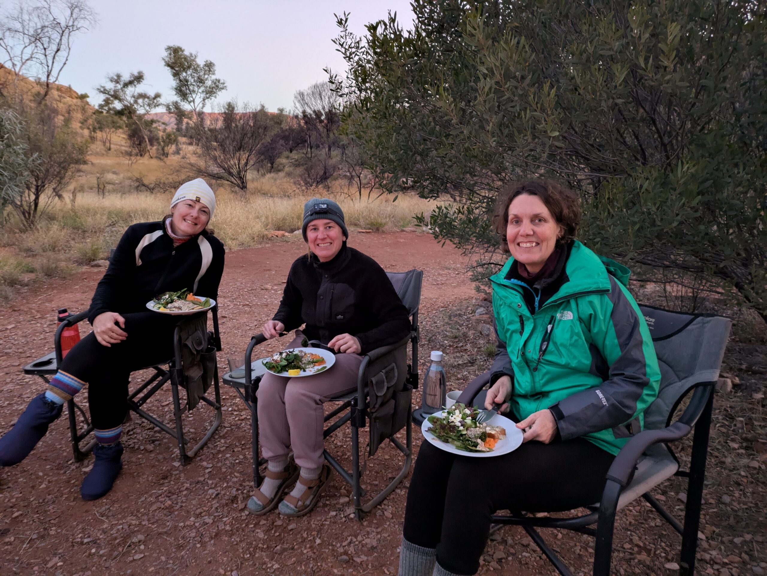 For lunch each day, the guide carried tomato, cheese, avocado, sandwich meat, capsicum, carrot, cucumber, beetroot, lettuce, dips, wraps and a giant block of Whittakers chocolate, and prepared the food at the designated lunch spot – usually at the top of a hill. Every day we would come across people walking the Larapinta Trail independently and so the lucky few that happened to lunch near us were offered our fresh food leftovers which were immensely appreciated.