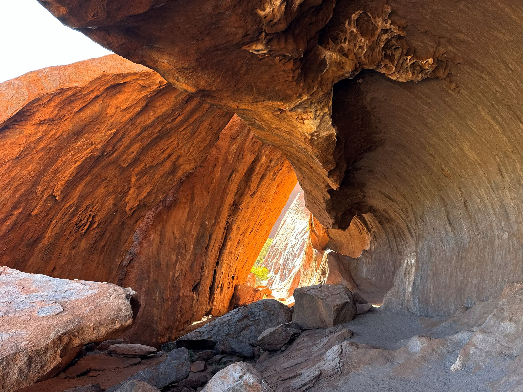 On our final day, we spent some time exploring the base of Uluru before we drove back to Alice Springs. When I first visited Uluru in 1992, we walked/struggled to the top of Uluru along with hundreds of other tourists and generally enjoyed the experience and the view from the top. This time standing at the ‘closed’ sign and looking up to see the path that I’d followed (and lost my favourite Hot Tuna hat to the wind), I again had lots of memories of that time and felt conflicted about the decision to follow that trail, however ill-informed and young I was. I also remembered it being really quite scary in parts because it was pretty dangerous going straight up on the edge of the rock with only a knee-high chain to hold on to which you had to share with tourists going both ways.