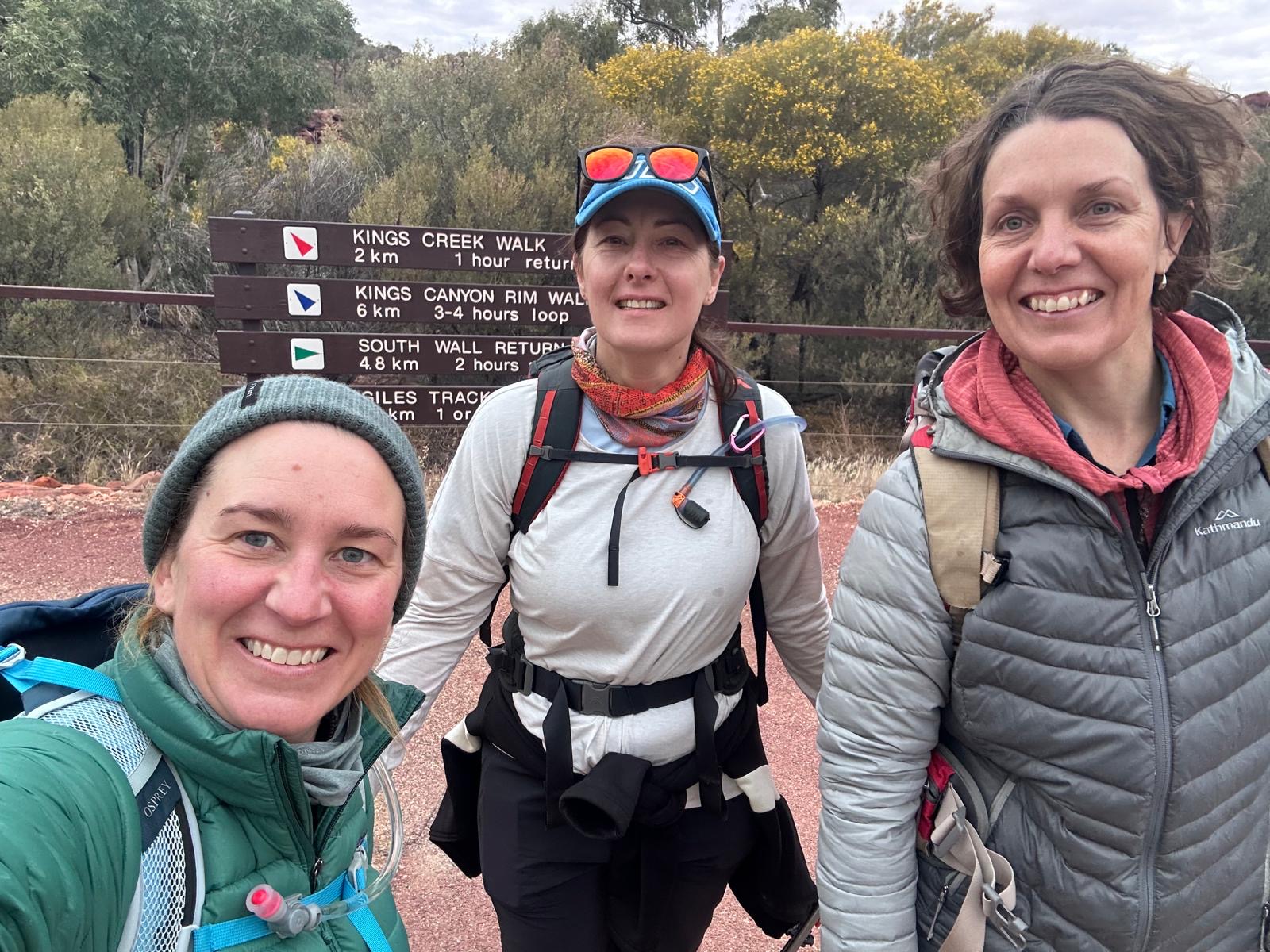 We arrived at Kings Creek Station at 5:58pm just in time to collect the keys to our “tents”, see the sunset and make it to the kitchen for 6:30pm last orders. Phew! I had a caesar salad while the girls shared a camel burger. The tents were pretty comfortable with reasonably stable beds, power outlets and reverse cycle air conditioning cause it got down to 0° overnight.