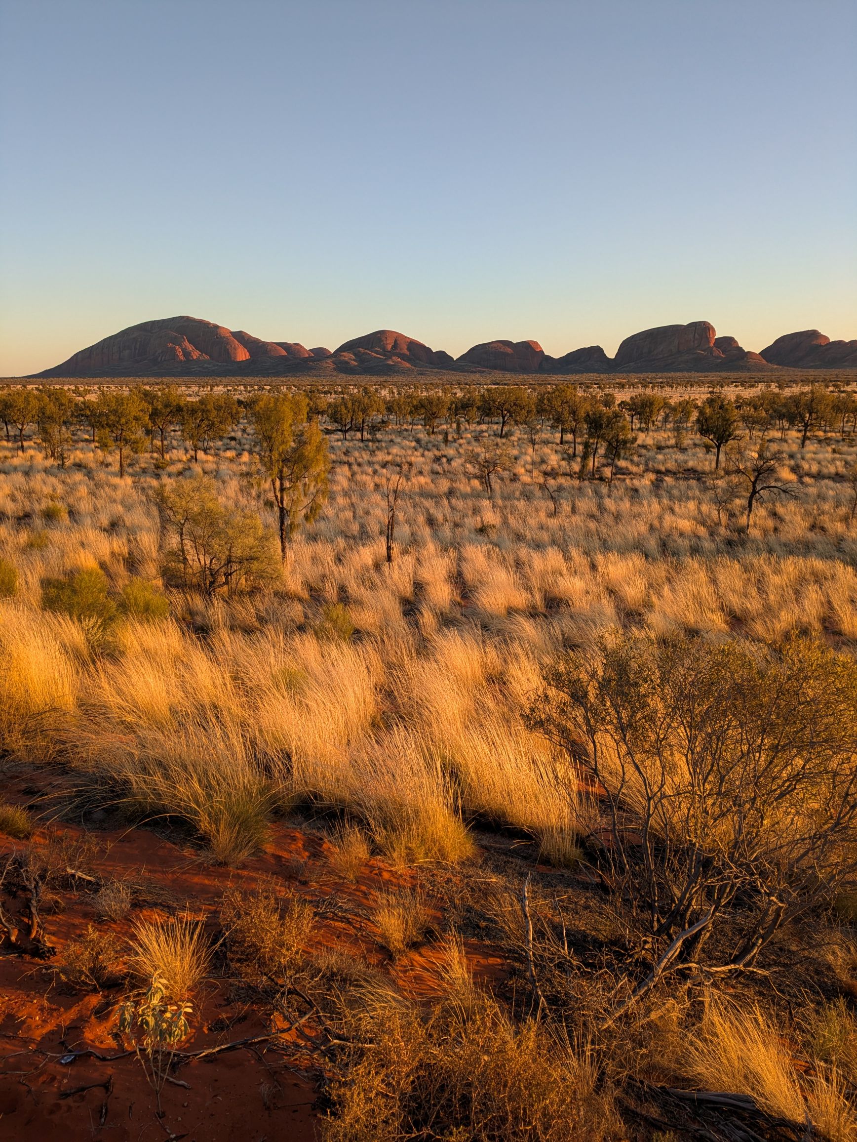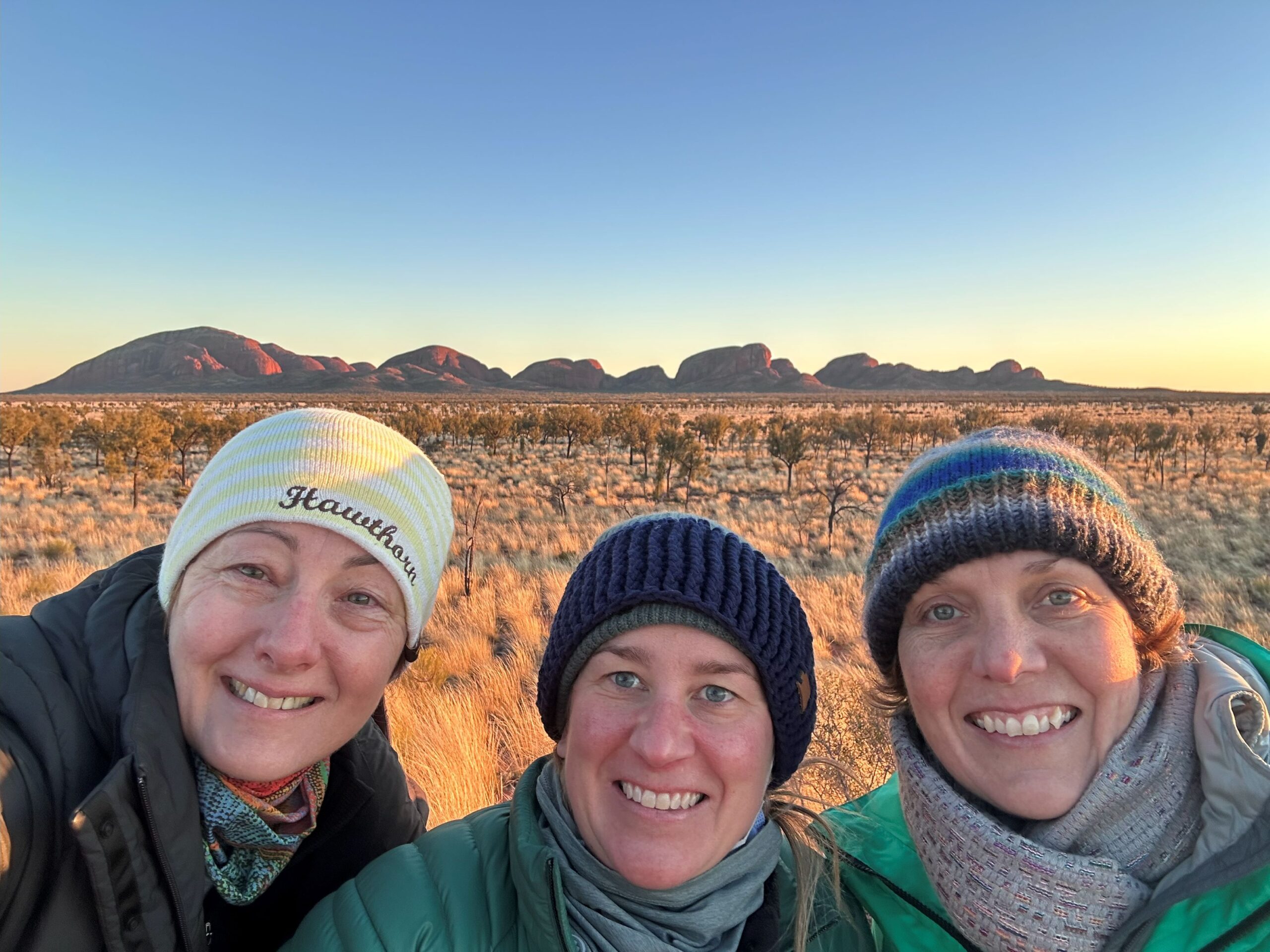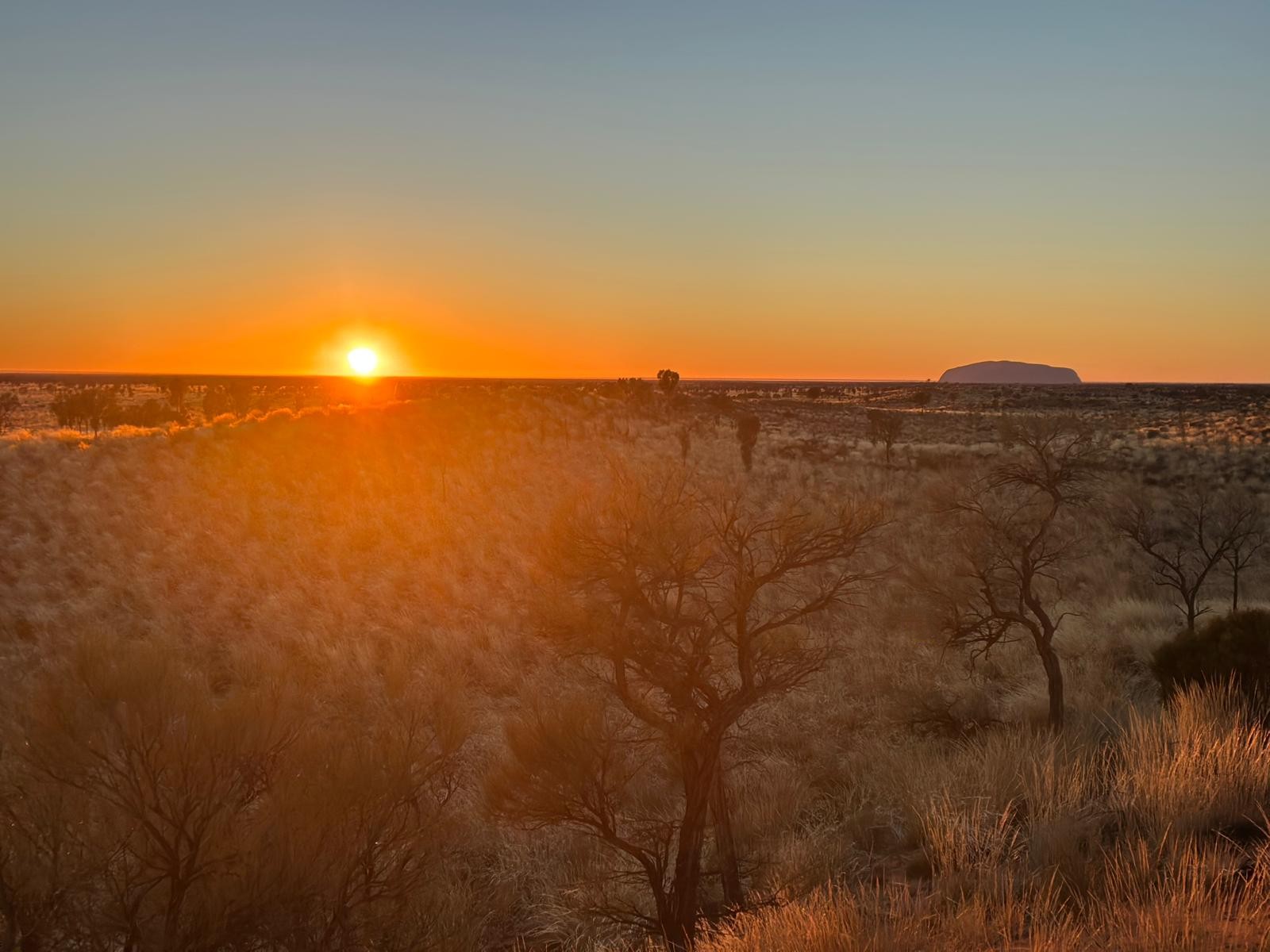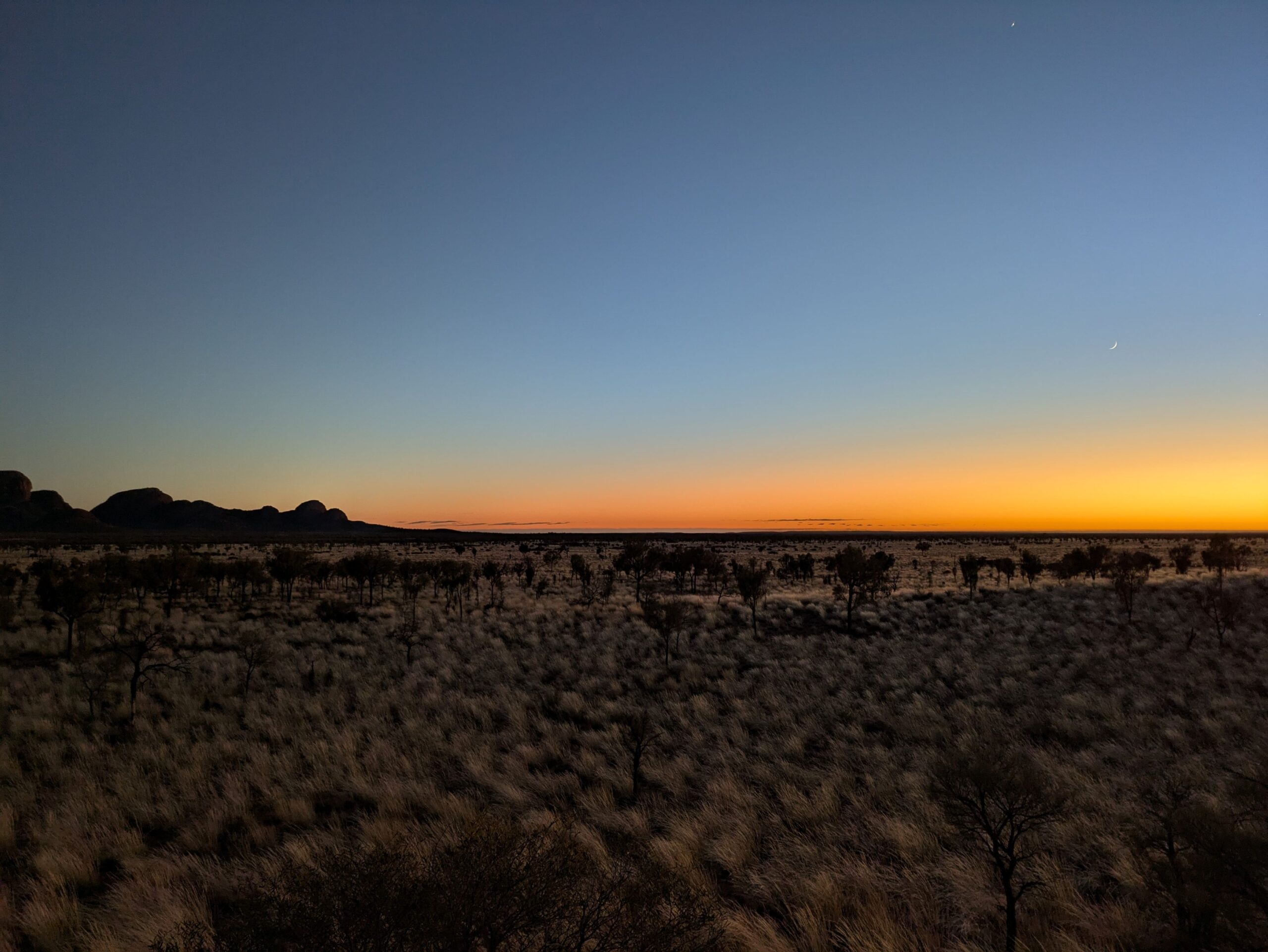 We saw the sunrise at both Uluru and Kata Tjuta during our stay (or to be astronomically correct, we saw the earth move towards the point in the sky where the sun is both days). In summary, it was COLD. At Uluru, the sun was too far north (given it was July) so there wasn’t much colour to the landscape as the day came to be. At Kata Tjuta, the colours were beautiful as daylight creeped up to the horizon and across the desert. We were watching the constellations fade away and the outline of Uluru on the horizon – it was very special. But our toes and noses were frozen. We were dancing on the spot or standing wedged next to each other to keep warm. Funny how the photos don’t show that discomfort at all!!
